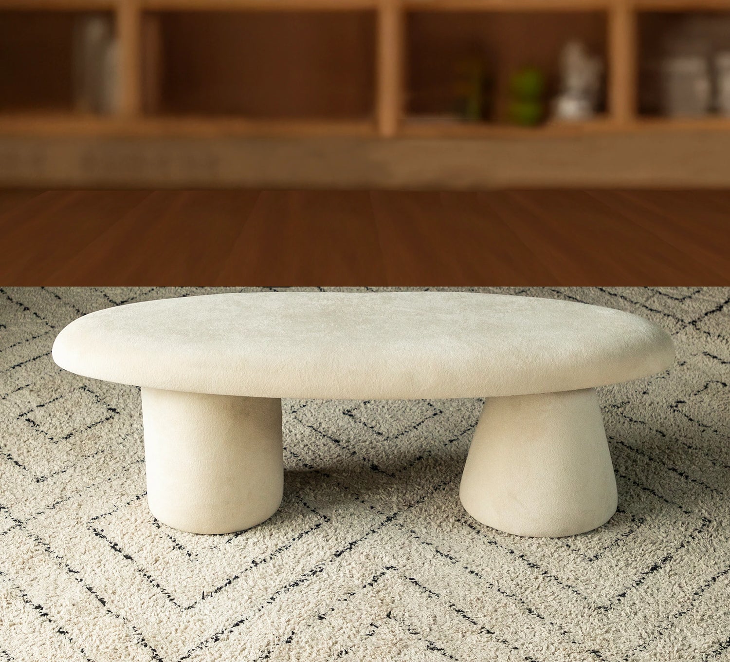 Nova Oval Bench – Curved Perfection in Luxe Fabric