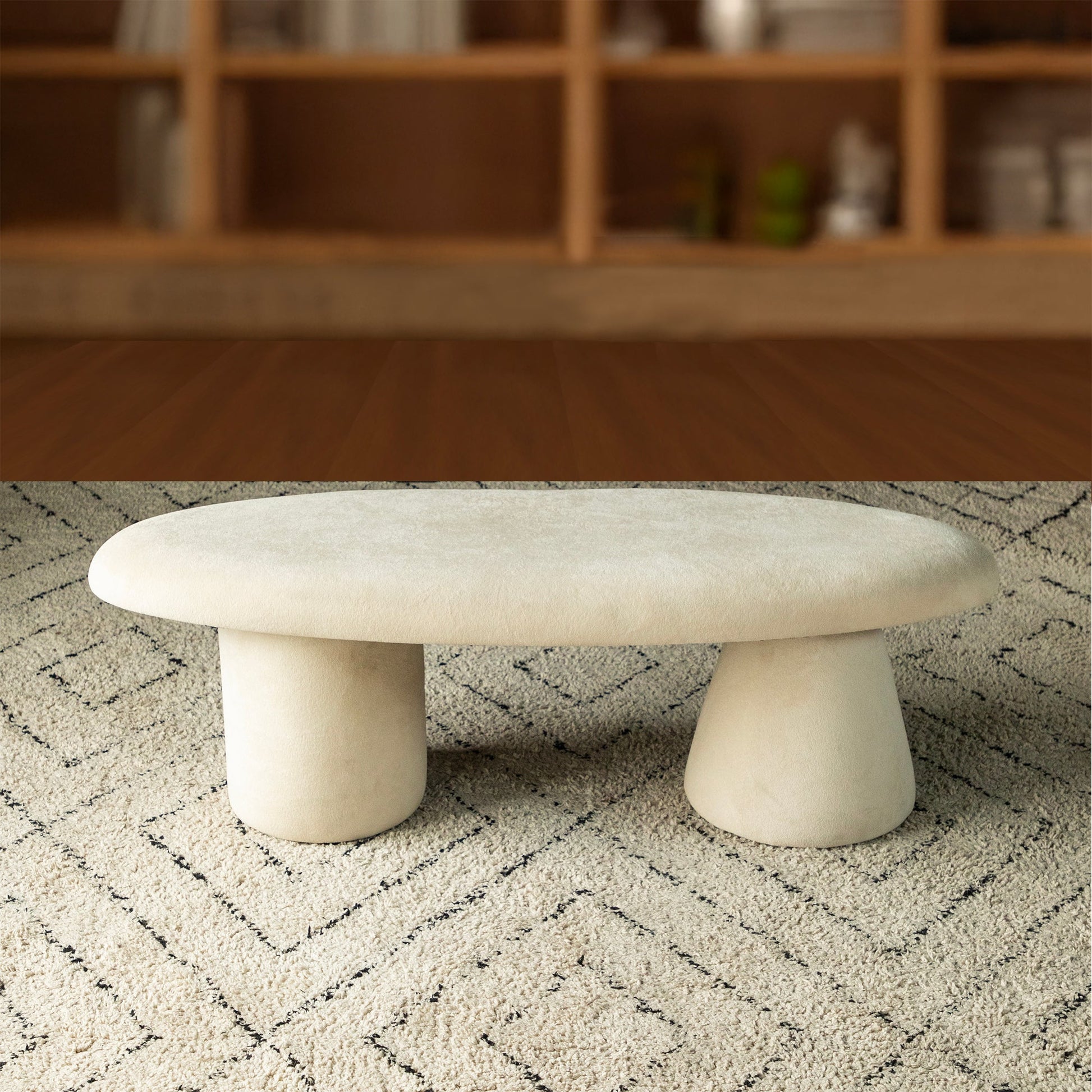 Nova Oval Bench – Curved Perfection in Luxe Fabric